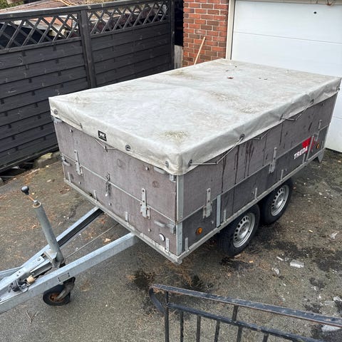 Tredal tilhenger med uttrekk drag. Kassemål: 153 x 197cm. Max draglengde: 255cm. Totalvekt. 850kg. Nyttelast 645kg. Nye dekk.