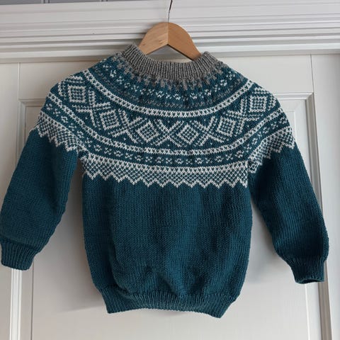 Ny håndstrikket Marius genser i str 2 år. Strikket i godt og mykt garn fra Sandnes garn. Garnet som er brukt inneholder:ull, alpakka, merinoull og akryl. Hovedfarge er rosa, mønster offwhite og sandfarge. Fargene kan avvike noe i forhold til bilde.