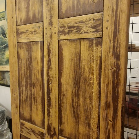 Her selges et helt unikt sett – spisebord og seks stoler, laget i massiv eik av en møbelsnekker. Håndlaget kvalitet og eksklusivt design gjør dette til et møbel du ikke finner maken til.
