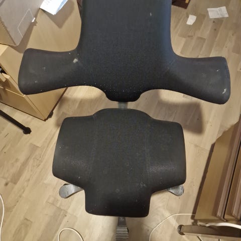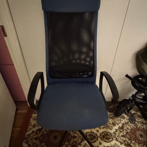 Pent brukt kontorstol med høg rygg og justerbar setehøyde selges. Fargen er svart. Den har stått ubrukt i lengre tid, og brukstiden var kort.