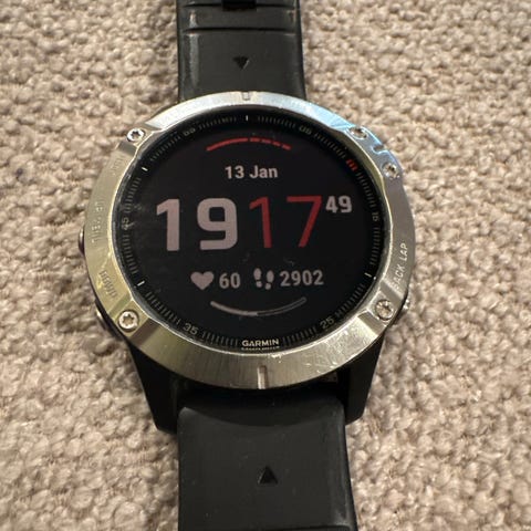 Garmin Fenix 6 Pro smartklokke med Gorilla Glass og vanntetthet opptil 100 meter. Klokken har en robust design og er egnet for ulike aktiviteter og utendørs bruk. Godt brukt men fungerer like godt som når den var ny.