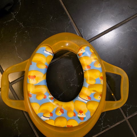 RunBear barnepotte i hvit plast. Potten har et avtagbart sete og en enkel utforming for bruk til barn.