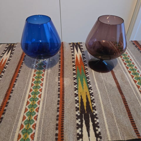 Grønn liten vase, antagelig fra serien Reffla av Arthur Percy for Gullaskruf glasbruk. Samleobjekt, 1950-tall. Jeg er ikke helt sikker, denne har striper på nederste del, ikke øverst. Jeg har ikke funnet noen helt identiske på nett, bare lignende. Høyde 8,5 cm, diameter på langs 9 cm, tversover 5 cm, vekt 190 gram. Merk størrelse, den er liten.