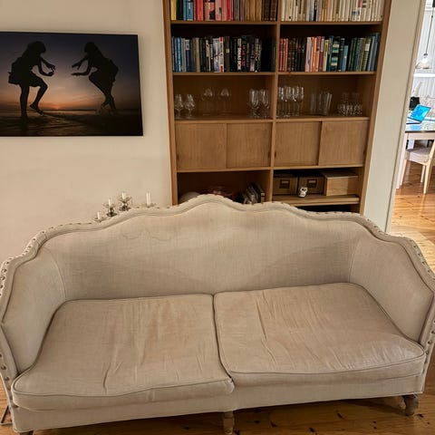 Eldre sofa, ca 10år gammel. Godt brukt, men fortsatt en del år igjen. Generelt fin estetisk, men stearin flekk på enden av sjeselong, se bilde