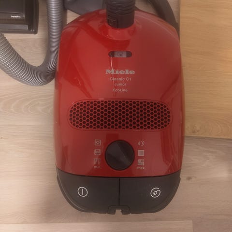Miele S8 støvsuger i hvit farge. Utstyrt med slange og teleskoprør. Passer til rengjøring i hjemmet. Har litt merker her og der men ikke av betydning for bruken. Vært lite i bruk da vi har sentralstøvsuger isteden.