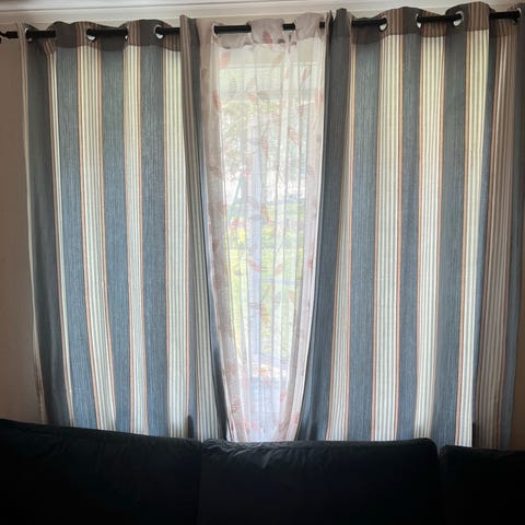 Selger to par (fire gardiner) i beige, modell Hannalill. Denne modellen selges ikke lengere på IKEA. Per i dag er gardinene lagt opp men dette er med stryketeip så dette kan enkelt fjernes