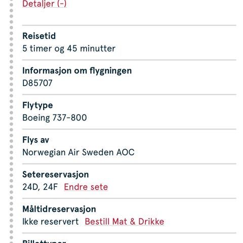 Det er med mat på flyet. For å bytte navn koster det 500,- pr stk som kommer i tillegg