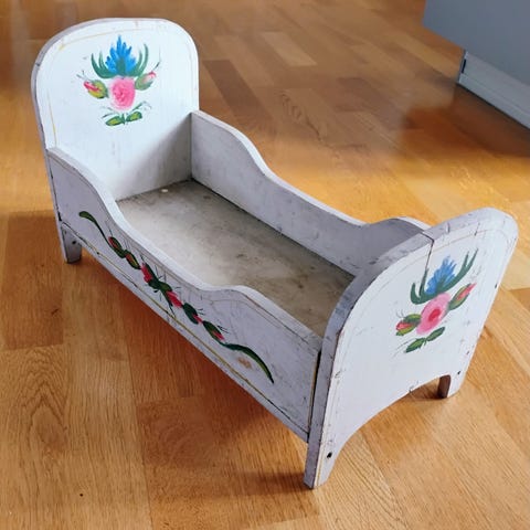 2 sprinkelsenger til dukkehus el lignende. Mørk tre. Siden kan beveges opp og ned.