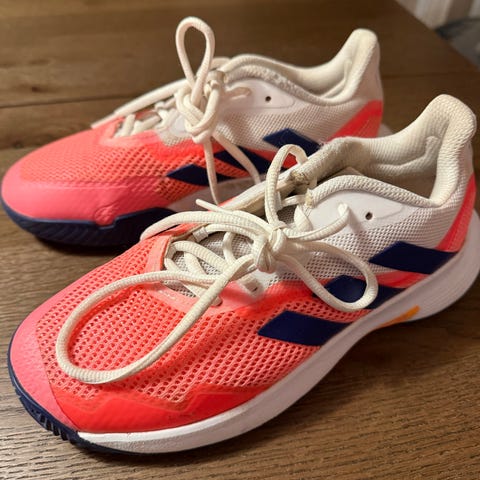Adidas Avacourt 2 damesko i rosa og hvit. Skoene har en lett og pustende overdel, egnet for tennis og andre sporter som krever god bevegelsesfrihet. Sålen er laget for godt grep og stabilitet på baneunderlag. Selges da de ikke passet helt. Kun brukt 3 ganger. Ny pris kr 1740,-.