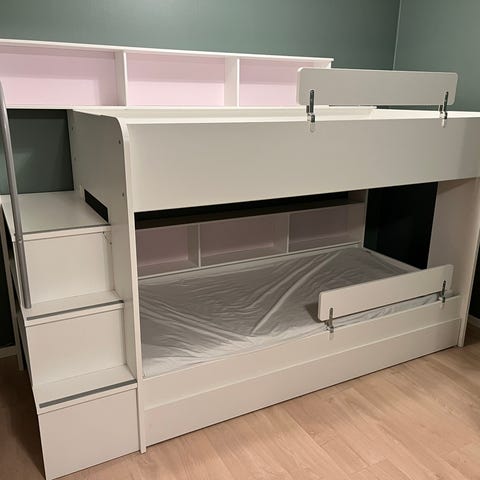 Vi har en andre seng av samme type, men dessverre gikk noe i stykker under flyttingen. Med litt gjør-det-selv-ferdigheter kunne den settes sammen igjen.