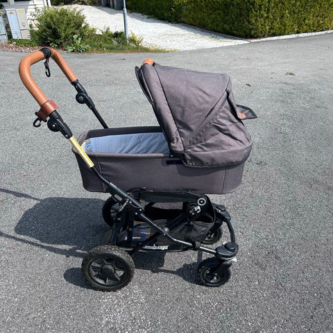Barnevogn fra 2020 med liggedel til baby og sportsdel. Bagdelen er som ny. Den er kun brukt på et par trilleturer og oppbevart inne. Sportsdelen er pent brukt. Den har vendbar ergonomisk sittedel med mulighet for å legge ned sittedelen i flere høyder. Enkelt å justere mens man triller.