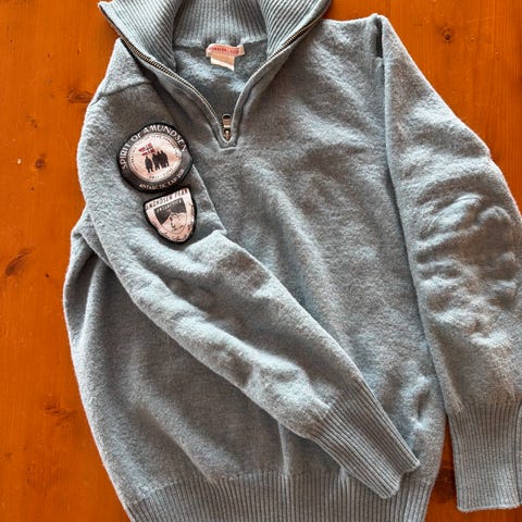Denne var opprinnelig str xs i dame, men er nå mer en str 110 for barn. Jeg kjøpte den selv brukt og håpte den skulle passe min sønn på 12, men den gang ei.