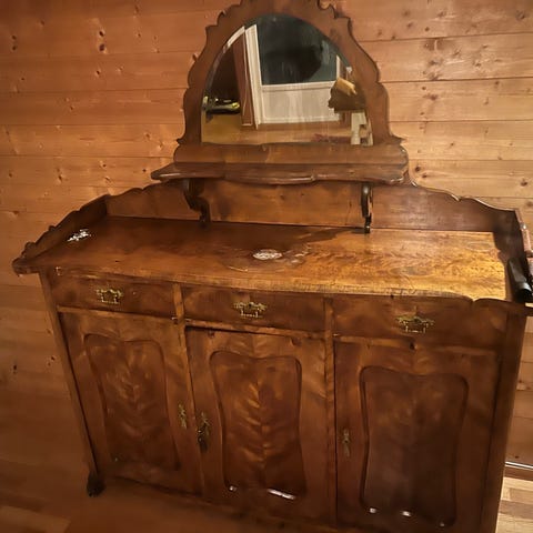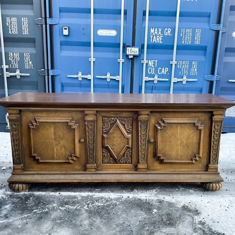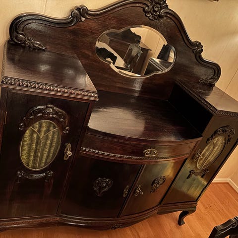 Stor og elegant skjenk i art nouveau>art deco-stil. Fin brukspatina. Nøkkel medfølger. Mål på bilder.