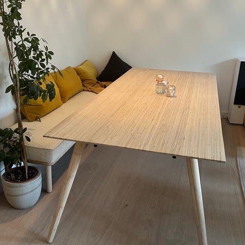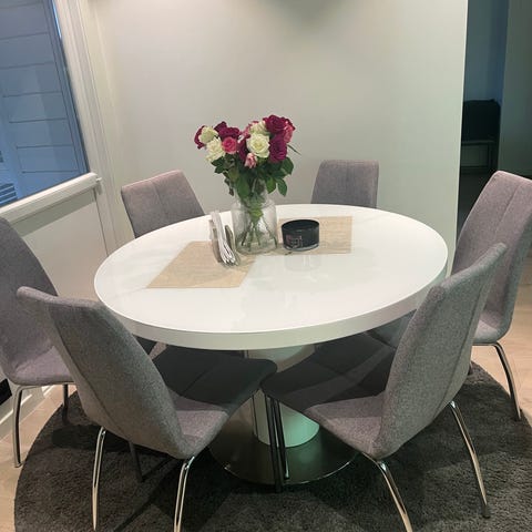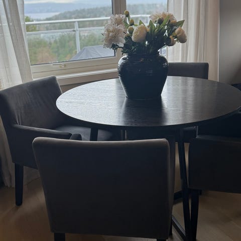 Selger et komplett spise-/kjøkkenbordsett fra Bohus, bestående av Smokey kjøkkenbord og 4 stk Trym spisestoler. Settet er kjøpt sommeren 2024, er lite brukt og fremstår i meget god stand.
