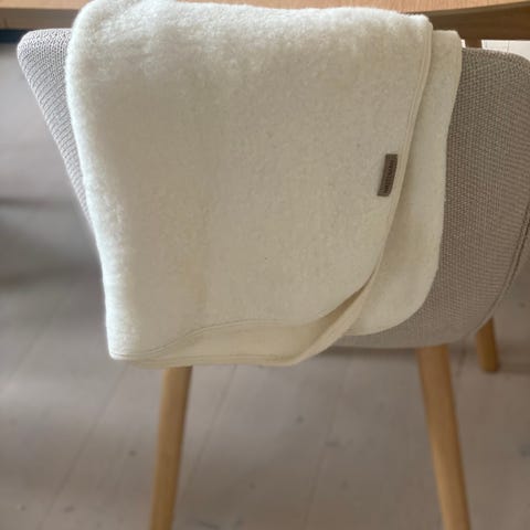 Selger pent brukt ullfleece pledd fra Nøstebarn i fargen natur i strl 80*100cm.