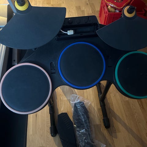 Nintendo Wii trommesett til Guitar Hero selges (pent brukt, testet, virker som det skal). I tillegg Wii Sing spill med 2 mikrofoner (alt som ny, brukt kun en gang)