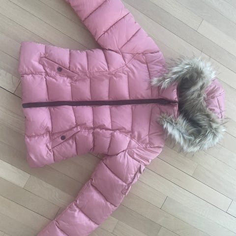 Veldig fin rosa farge, god stand. Str er 152 med er mer som 146. Nypris var 1599.-