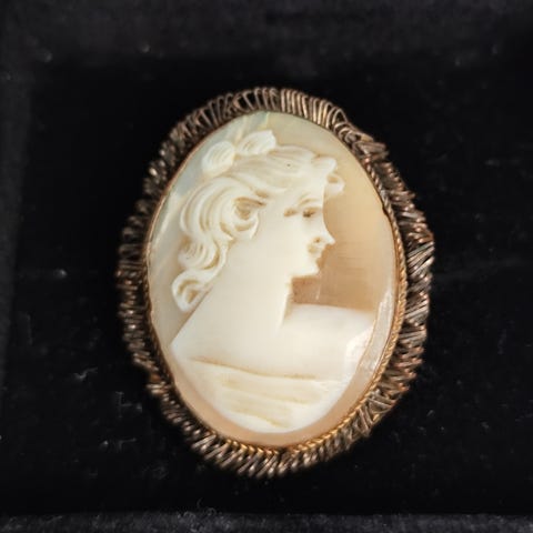 Gammelt vintage utskåret skjell kameo