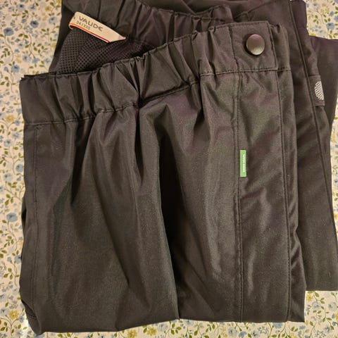 Norheim regnjakke og regnbukse i størrelse XL for unisex. Jakken er blå, buksen er svart. Passer til ulike utendørsaktiviteter og gir beskyttelse mot regn. Nesten ikke brukt