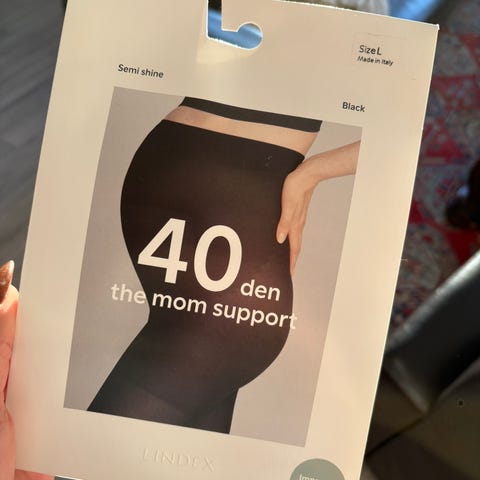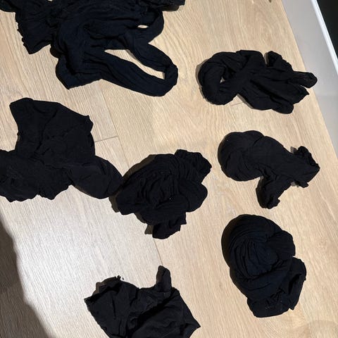 Sort strømpebukse og thights prøvd på. Hudfarget ikke tatt ut av esken.