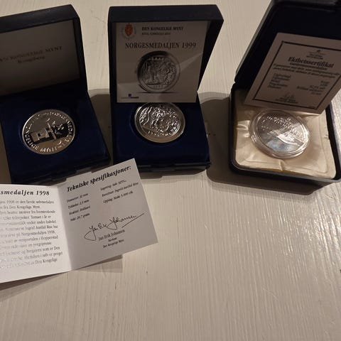 Vekten på en medalje er ca 33.87 i 0.925 sølv se bilde 6 Men de inholder 31.1 oz sølv .