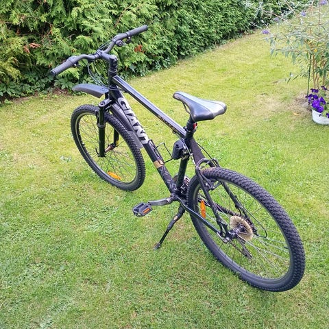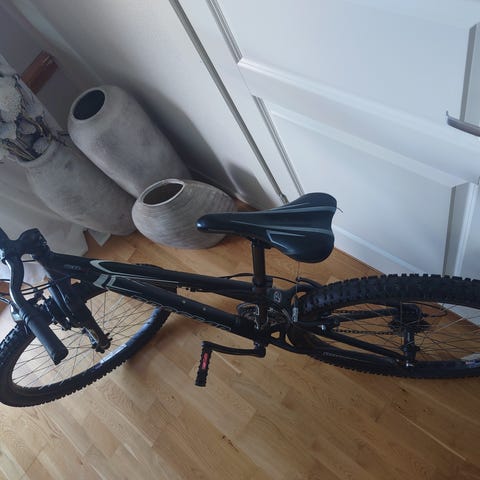 Vintersykkel med piggdekk. Hydrauliske skivebremser