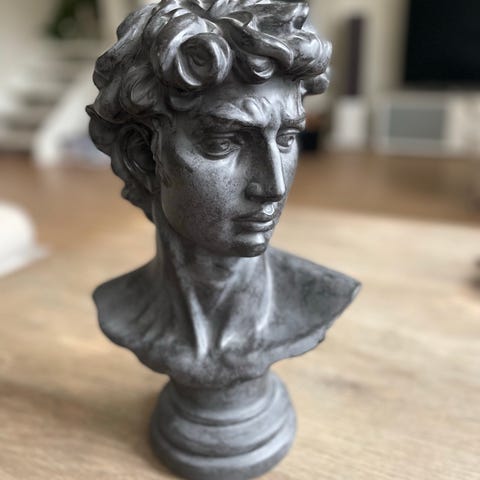 Klassisk gipsbyste inspirert av Michelangelos David.