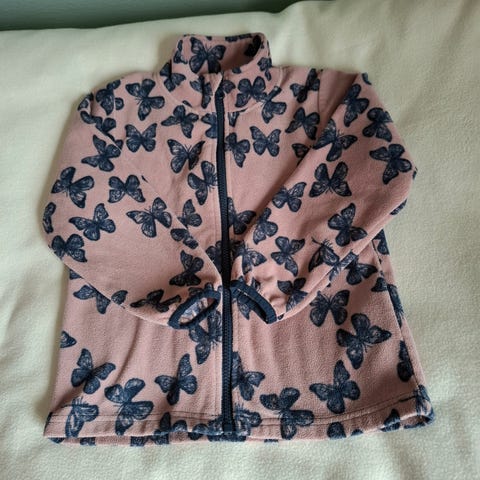 Pent brukt tynn jakke av 100% polyester i et fleece-aktig stoff. Perfekt som mellomlag.
