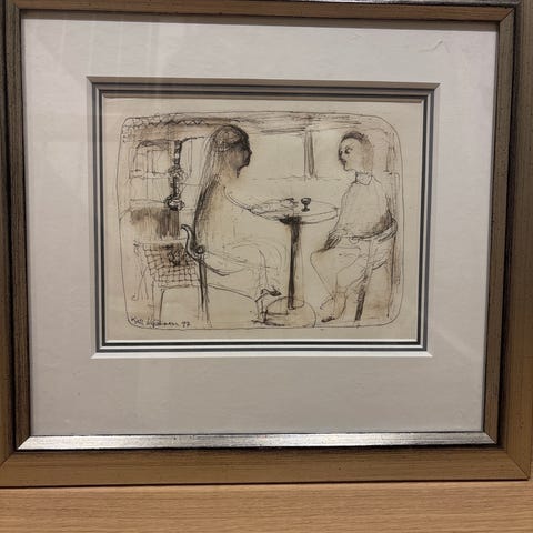 Tresnitt kunstverk som viser et portrett i tremateriale. Bildet har detaljerte linjer og tekstur som fremhever ansiktstrekkene i portrettet. Kan brukes som dekorasjon eller samlerobjekt. Kjøpt på kremmerhuset.
