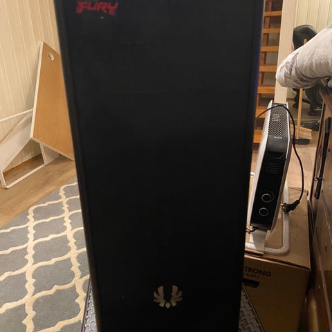 Stasjonær pc med et enkelt oppsett for kontor, skole og lett gaming, se bilder for mer info