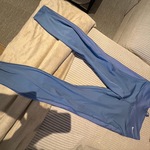 Fine leggings til trening fra Nike, i lilla farge, brukt svært lite. Sitter høyt i livet (rekker over navlen). Leveres vasket og ren :)