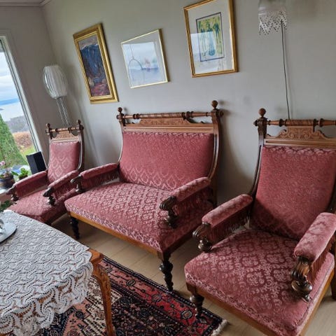 Settet er i meget god stand og har nylig fått et varsomt ansiktsløft med nytt trekk i moderne farger. Resultatet er et tidsriktig uttrykk som fremhever – ikke forringer – den klassiske rokokkostilen.