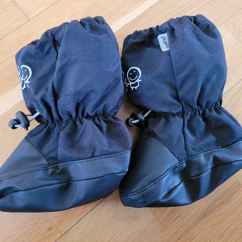 Fotposer fra Kuling i str 0-12 måneder med borrelås. Myk fleece inni og vanntette. Svarte. Pent brukt til ett barn