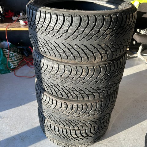 Gått 1 sesong. Mønsterdybde målt til ca. 8-9 mm, (10mm er nytt) så disse er ikke mye brukt.