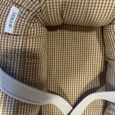 Kjempefint babynest fra Liewood. Veldig praktisk at det kan bæres rundt når babyen ligger i det. Pent brukt og vi har hatt et teppe oppi slik at det ikke er noen synlige bruksmerker på det. Avtagbart og vaskbart trekk.