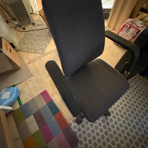 Selger en pent brukt kontorstol. Dette er en veldig fin stol som er behagelig å sitte i. Du kan justere høyden og låse ryggen. Den er laget av mesh materiale som er pustende.