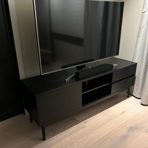 TV-en er helt ny, kun åpnet én gang. Da vi pakket den ut oppdaget vi at skjermen har fått en sprekk/knusning øverst, trolig skjedd under frakt. Den har derfor aldri vært brukt.
