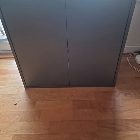 En liten firkant (35x35) med dør og en åpen hylle (35x70). Dybde 35 cm