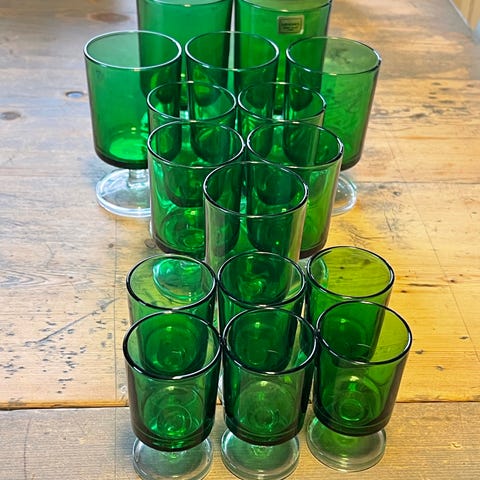 Grønne vintage Luminarc France stettglass, selges kr 50 pr stk.