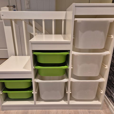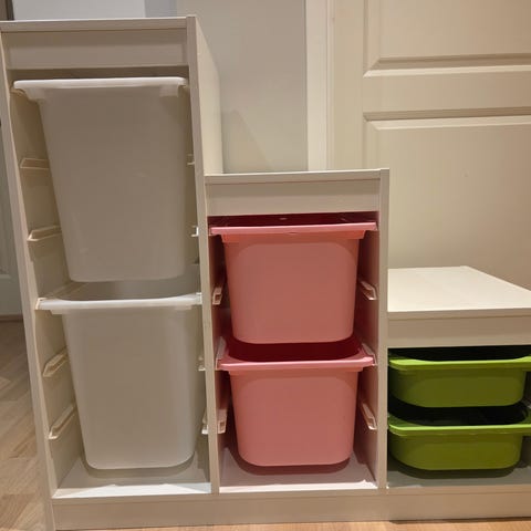 IKEA TROFAST barneoppbevaringssystem hvit med oppbevaringsbokser