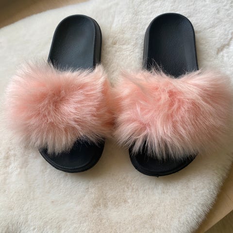 Rosa slippers i størrelse 42 med dekorative detaljer på remmen. Egnet for innendørs bruk.