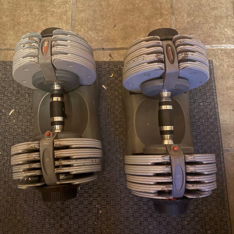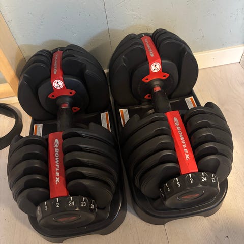 Bowflex manualer som kan justeres fra 2 til 21 kg per manual. Manualene har et svart design og kan justeres for å tilpasse ulike treningsbehov. Egnet for styrketrening. Kan hentes midt i sentrum.
