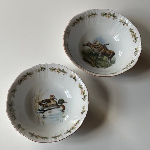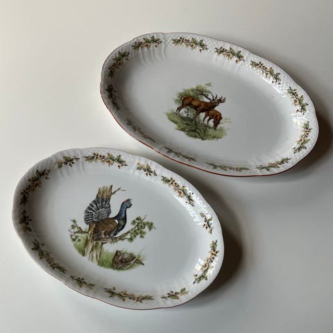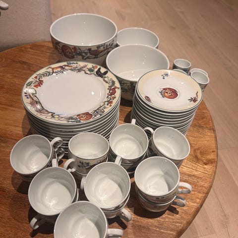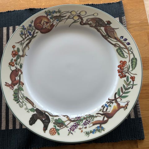 Selger et etasjefat i serien slottsserviset "Villmark". Seltmann Weiden for Christineholm Firkløveren. Motiv med elg, rev og fasan. Dette er 35 cm høyt og det nederste fatet er 27 cm i diameter. Perfekt stand. Helt ubrukt. 800 kr samlet. Kan hentes (Grünerløkka eller Sentrum) eller sendes.