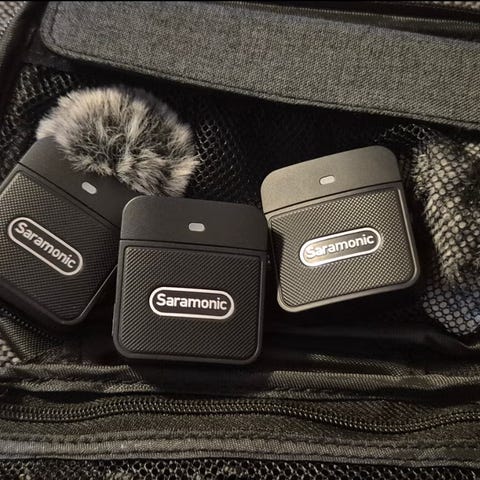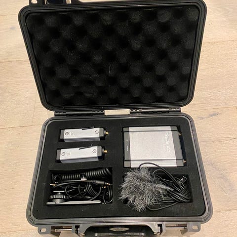 Selger et Saramonic Blink 500 ProX B4 trådløst lavalier-mikrofonsystem med Lightning-tilkobling for iPhone/iPad. Systemet ble kjøpt til en ferietur i 2024 og er kun brukt i denne ene forbindelse — som nytt.