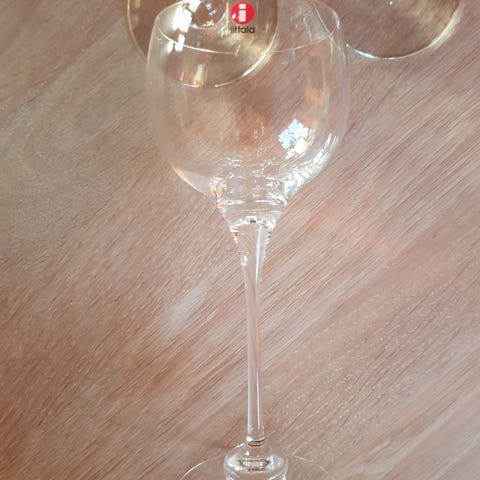 Iittala glass med blå stilk. Passer til servering av vin eller andre drikker.
