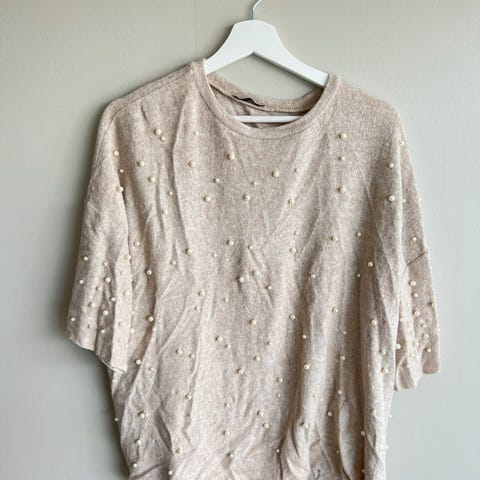 Zara T-skjorte i hvit farge, størrelse M for dame. Laget av bomullsmateriale. T-skjorten har et trykk på forsiden og er designet for hverdagsbruk.