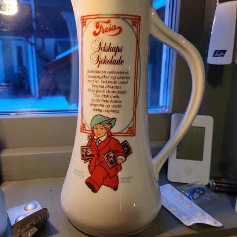 Porsgrunn sjokoladekanne med krus nr.1 og 2.