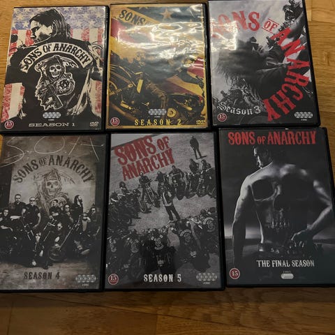 Sons of Anarchy DVD Sesong 1. Inneholder episoder fra den første sesongen av TV-serien Sons of Anarchy. DVD-format med original cover og bakside. Passer for samlere og fans av serien.