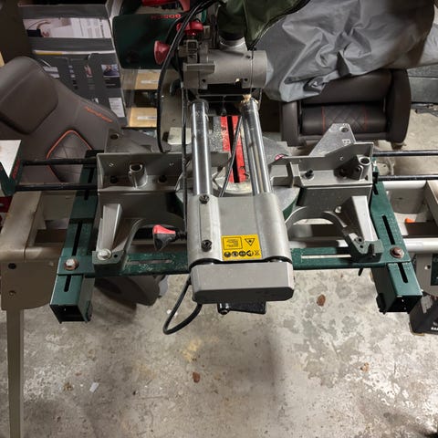 Bosch 805 bordrundsag med støttebord med sagbladbeskyttelse. Tilhørende støttebord med ruller for materialhåndtering. Passer til trebearbeiding og presise kutt. Selges grunnet flytting.