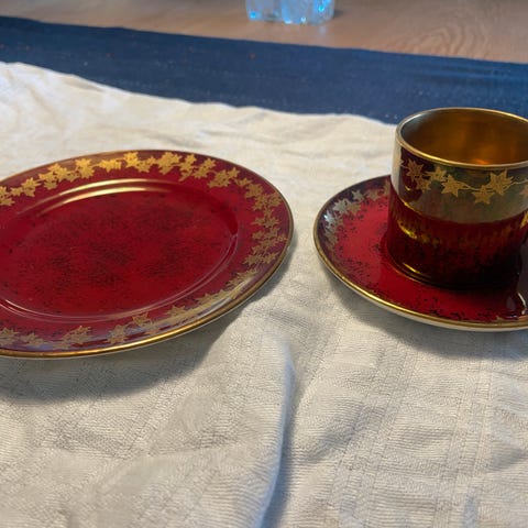 Dyp burgunderrød farge med 24 karat gullforgylling innvendig.